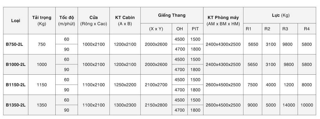 Thông số kĩ thuật thang máy tải giường bệnh